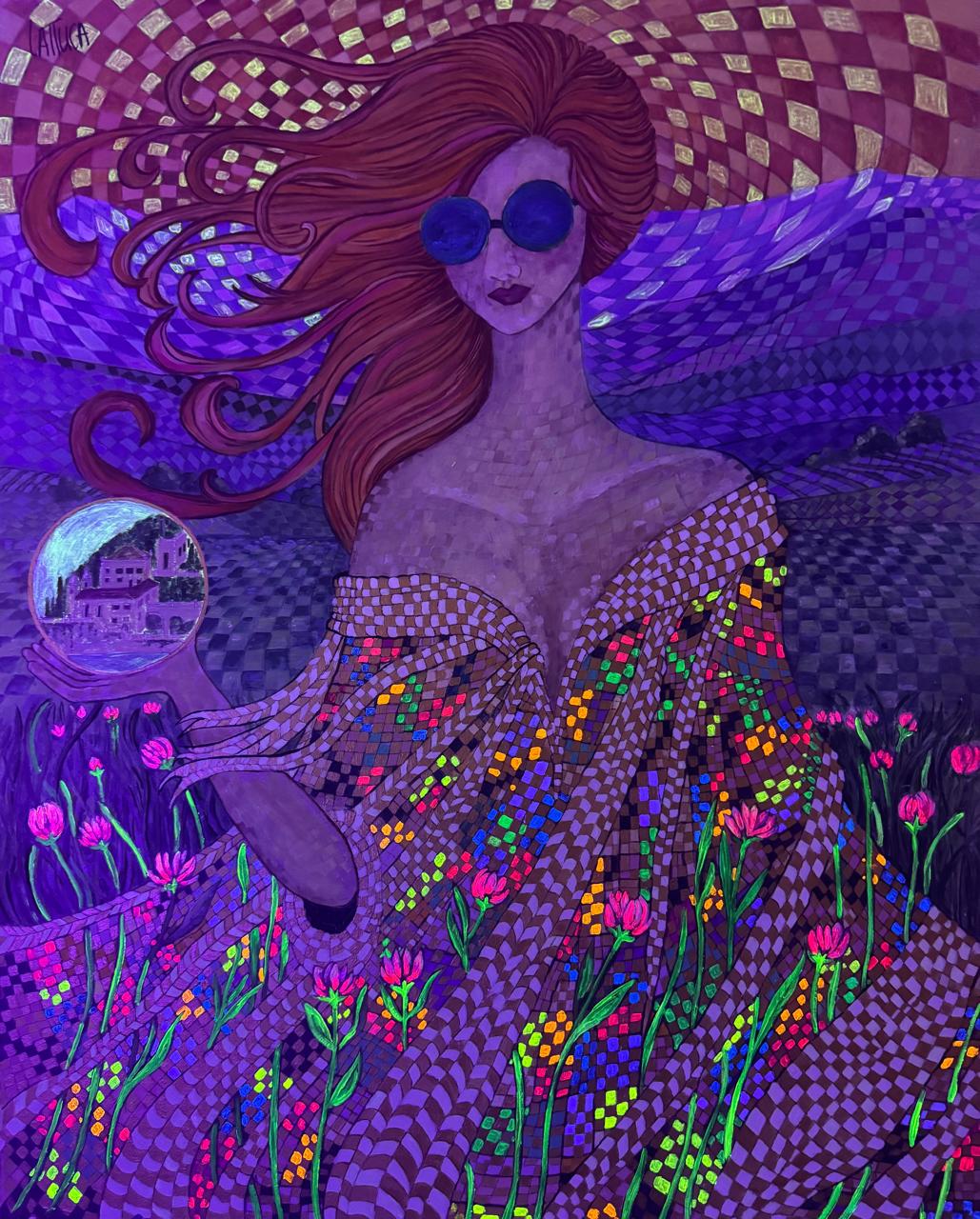 Originally created in acrylic and oil on canvas (800 x 1000 mm), this striking composition captures a surreal moment suspended between reality and magic — a meditation on intuition, beauty and unseen dimensions.